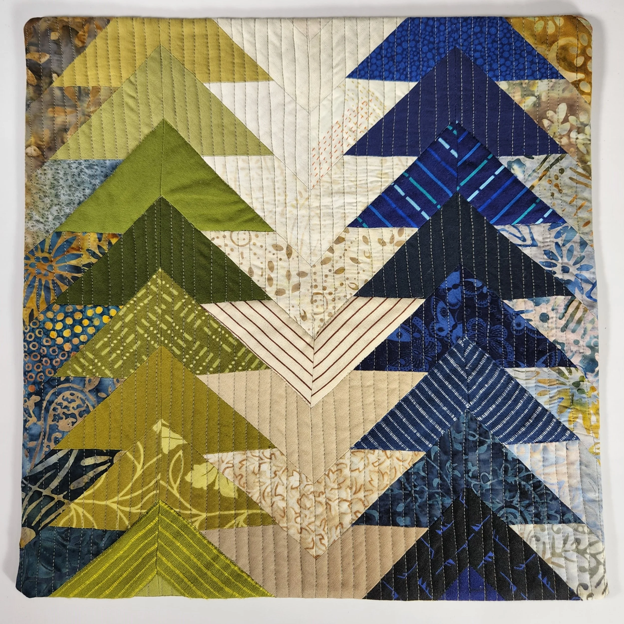 This mini quilt was created for a miniquilt challenge, and was an opportunity to explore a new scale and colorway using the Overlapping Geese design.